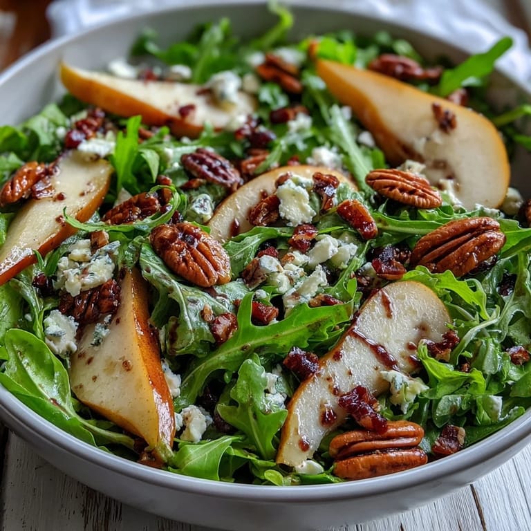 Pin It There's something about pear season that makes me want to build a salad around it—not the kind you eat out of obligation, but one where every element feels like it was meant to exist together. I was standing in the market last fall, holding a perfectly ripe pear that smelled like honey, when it hit me: why not pair it with something peppery and sharp? That's how this bowl came together, and now I can't imagine autumn without it.