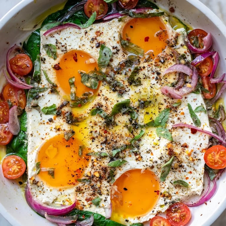 I made this for my neighbor on a Tuesday when she mentioned feeling tired of her usual breakfast routine, and she stood at my kitchen counter just watching it bake, the smell of warm tomatoes and oregano filling the whole apartment. When I pulled it out and the egg whites had just set while the yolks stayed beautifully soft, she actually laughed—that kind of genuine laugh that means something simple just made her day better. She's made it probably forty times since then, and every time she tells me it tastes better because she remembers standing there that morning.
