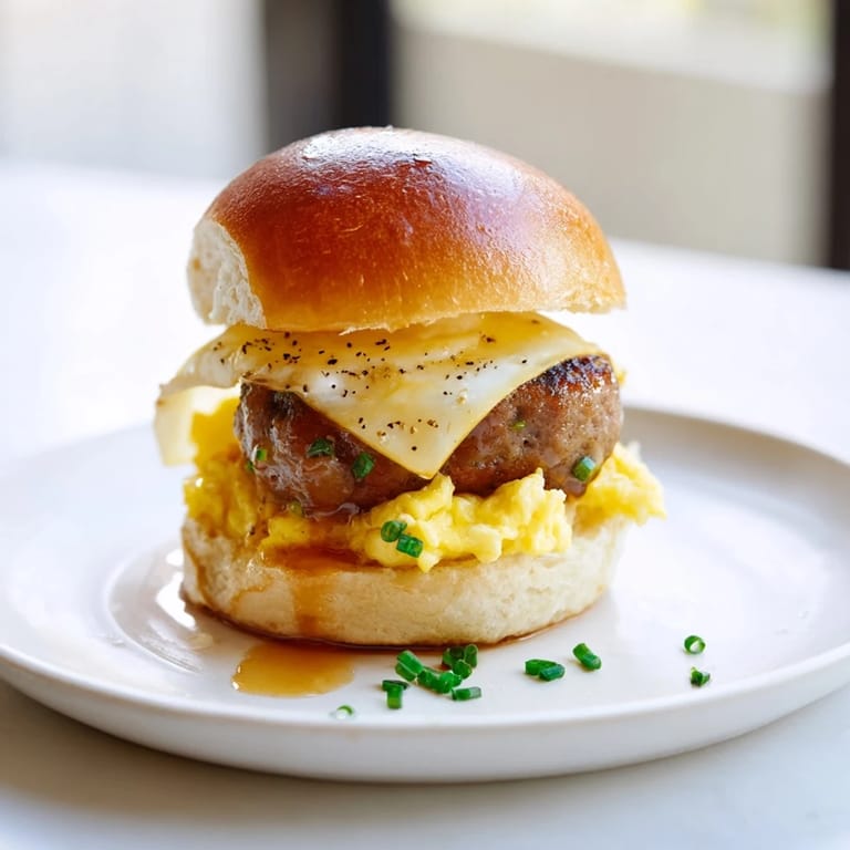 Pin It There's something about the smell of sausage hitting a hot skillet at ten in the morning that instantly makes you feel like you're doing breakfast right. I discovered these mini sliders one weekend when I was trying to impress a group of friends without spending hours in the kitchen—I wanted something that felt special but wouldn't keep me cooking while everyone else was already seated. The combination of fluffy scrambled eggs, crispy-edged sausage, melted cheddar, and that unexpected drizzle of maple syrup became the star of the table, and honestly, I've made them a dozen times since because they're just as fun to put together as they are to eat.