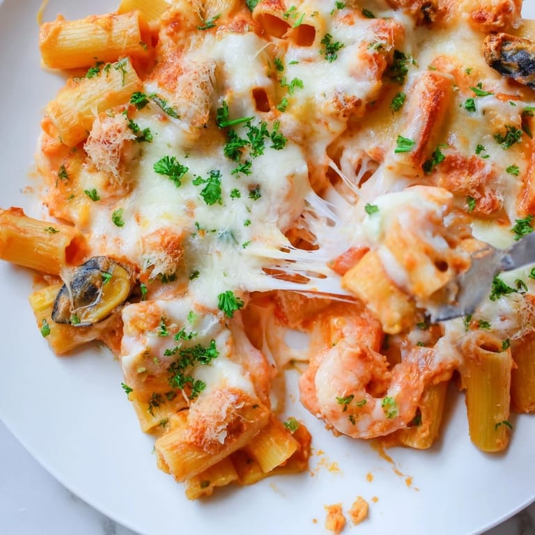 Pin It There's something about seafood pasta bake that transforms an ordinary Tuesday night into something worth lingering over. I discovered this dish entirely by accident when my neighbor mentioned she'd thrown together whatever she had in her kitchen and somehow created magic. The combination of briny seafood, creamy tomato sauce, and that crackling golden cheese top felt like coastal Italy meeting cozy comfort food, and I knew I had to recreate it.