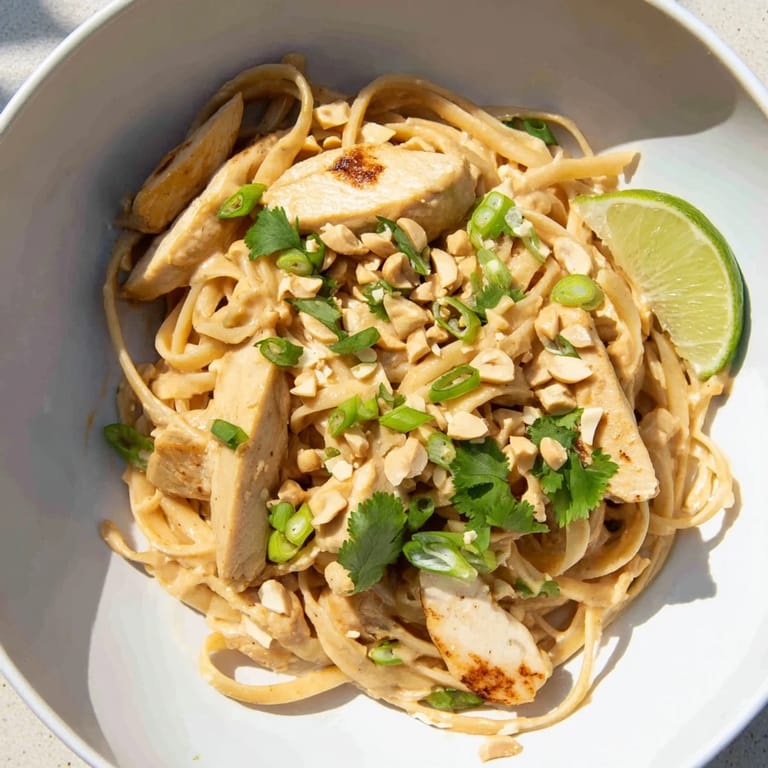 This recipe thrives on efficiency. Because you're using ready-made peanut sauce, you're not spending time building layers of flavor from scratch. Instead, you're layering textural contrasts and fresh elements on top of something already complex. It's the kind of dish that feels impressive because it comes together so quickly, not despite it. Start the pasta water the moment you walk into the kitchen, slice your chicken while the water heats, and by the time you're halfway through, everything is moving in harmony.